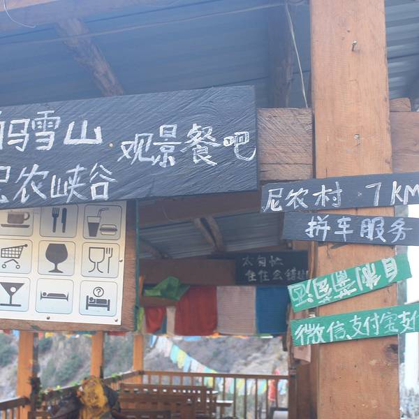 五、餐饮,尼农峡谷全程有3处休息补给点,但现在冬季为淡季,只有尼密境客栈餐吧这处休息补给点依然开放,可以在这里喝杯酥油茶5元/小碗,30元/壶。或者可以在这里就餐,店内特色雨崩家家面30元,青稞烙饼15元,藏乡猪50元,松茸炖鸡100元,这个餐饮丰俭由人。六、住宿,尼农峡谷全程共有两家供游客住宿的客栈,位于尼农峡谷内的尼农密境客栈和位于尼农停车场的尼农大峡谷客栈。尼农密境客栈景观很赞,对面是白马雪山,下面雨崩河在峡谷内湍流而过。尼农密境客栈提供床位35元。尼农大峡谷客栈地处尼农停车场内也是雨崩徒步的终点,该客栈更适合徒步归来没有结伴又不想单独包车到德钦的游客,他可以在此停留一晚,第二天拼车一起回德钦。或者打算在此休整一下的游客,客栈提供床位40元,标准间100元。