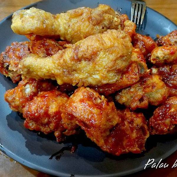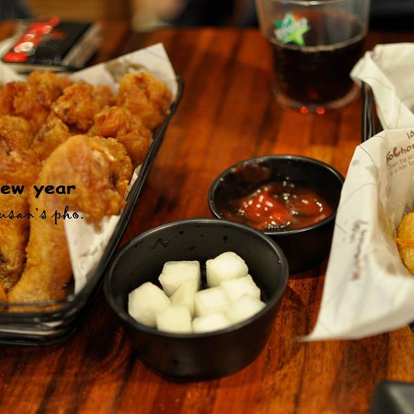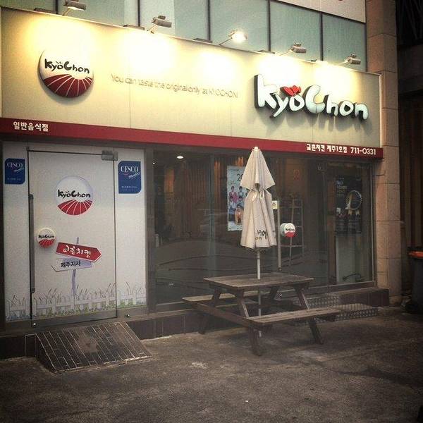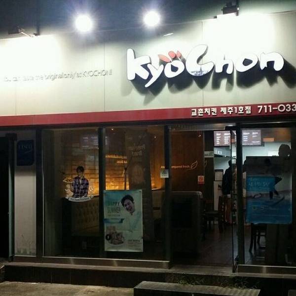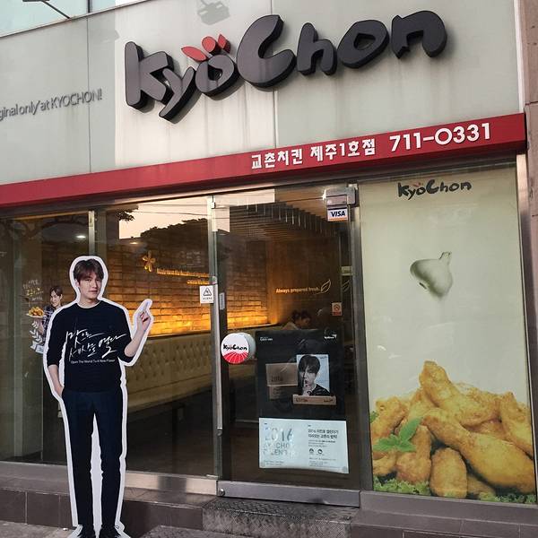 正宗的韩国炸鸡 人气剧集《来自星星的你》令啤酒炸鸡一夜爆红,来到大韩民国不吃一下正宗炸鸡怎么行。韩国炸鸡店很多,校村(KyoChon)在韩国一直很出名(国内也只有上海有分店),真的可以说慕名而来。 虽说校村(KyoChon)出名,但是店面不是那种华丽丽的,并没有隆重堂皇的装饰布置,只是一个很简单但很醒目的招牌,门口放着代言人长腿欧巴李!敏!镐!人像,店里的装饰也是很简单,可以看出韩国人吃炸鸡就像小吃外卖,讲求效率之余不失味道。点餐时候,服务员有中国留学生,看来中国游客是挺多的,所以不懂韩文也不用担心。因为太累了,又有点晚,所以选择外卖带走。首选原味,再加了一份辣味,送了一罐可乐,一份腌萝卜,原味需要蘸酱,不过两种口味都好好吃,而且各具特色。 原味炸鸡,完全不像KFC那些面粉炸鸡,炸鸡香脆可口,细嫩肉滑,每一口都充满浓浓的鸡味,配上酱料,又有另一番滋味。不过看个人口味爱好,其实我觉得也可以不蘸酱,已经是原汁原味,同样的好吃。 辣味炸鸡,不需要蘸酱,香辣的味道已经融入炸鸡里面,味道香辣多汁,诱人可口,个人感觉不算很辣,味道调得很好。比起原味,其实我个人更喜欢香辣味,有汁有味,另外去便利店买个韩国啤酒,搭配完美了。连续吃了两晚,欲罢不能,好希望能来广州开一家。校村消费不贵,人均也就是60元人民币,味道、性价比都很高,而且真的很填肚子。来到大韩民国,不感受一下啤酒炸鸡,白搭了。