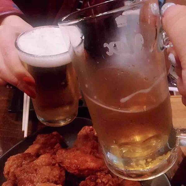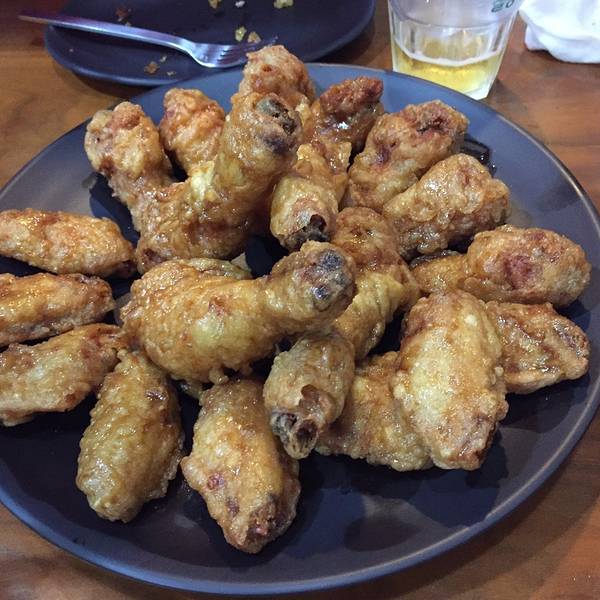 校村炸鸡。找炸鸡店。看来看去最后还是选了这家。大都是本地人。一大份炸鸡配很多杯扎啤。炸鸡配啤酒~炸鸡和国内的校村味道比起来还是略微有点不同的。炸的更酥脆,表面口味更入味。扎啤冰冰爽爽的,还解油腻。大概因为吃过晚饭,一大份两个人根本吃不掉。