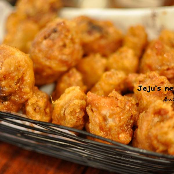回来的时候,同样是漫长的长途车,到了济州市区,天都已经黑了,我们一行四人分了手,小伙伴带我去吃特别有名的校村炸鸡~哈哈