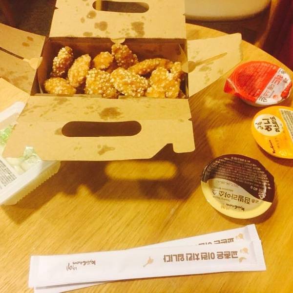回到新济市才六点多,逛了逛新罗免税店和商业街后来到酒店旁边的校村炸鸡点了份无骨鸡当做宵夜。校村炸鸡是superjunior代言的品牌,酒店对面还有个全智贤代言的bhc炸鸡。没有尝过bhc也不知道哪个更好吃。