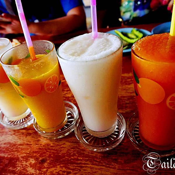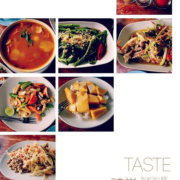 出门吃饭的时候已经两点多了,步行街静悄悄的,我们随便走进一家有客人在吃饭的店PAPAYA MOM,冬阴功汤,青木瓜沙拉,咖喱蟹,芒果糯米饭,空心菜,四杯水果冰沙,菜单信手拈来,因为早都在脑子里计划了很久了。第一餐,非常完美!就是菜量稍微有点小,感觉没够吃呢! 丽贝岛的步行街真的好短,从东走到西也就二十分钟,白天很多小店都不开门,街上也看不见几个游客。有家7-11在街的中间位置,大家热了就进去吹吹冷气,顺便考察一下物价。确实要比合艾贵了一点,但是因为海岛的物资都需要用船从外面运进来,贵这么一点也有心可原。