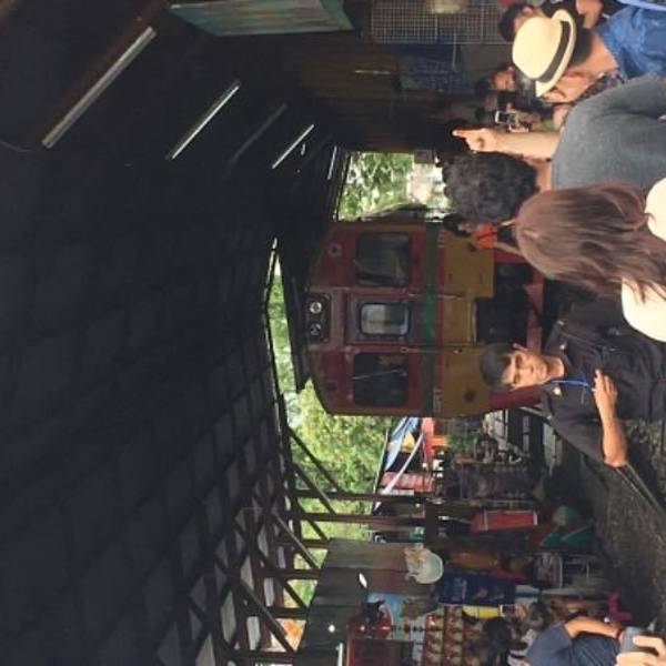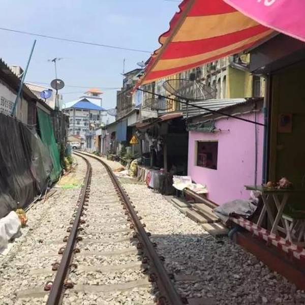实用 在捷运BTS胜利纪念碑站(Victory Monument)2号出口,看到SUZUKI 大楼,...在电视上看过很有趣的介绍,就是置身在铁路两旁的市集,每当有火车经过,店家都会赶紧收拾,很想亲眼目睹这一切,所以,出发!小资是中午时间出发的,所以到达后,要先吃饱饱,来到这边的小店基本上很难看到英文...在电视上看过很有趣的介绍,就是置身在铁路两旁的市集,每当有火车经过,店家都会赶紧收拾,很想亲眼目睹这一切,所以,出发!小资是中午时间出发的,所以到达后,要先吃饱饱,来到这边的小店基本上很难看到英文,点餐都是随便乱指的!铁路周围环境,有点像旧城区。除了在铁路两旁有市集以外,里面其实也有一个很大的菜市场。在市集里面有着很多泰国本地的小吃,很多小资都看不出个所以然,都是随意买的,吃了下去也不知道是什么,哈哈。主角来了,就是这一条轨道上,火车来的时候,他们真的来得及收摊吗?由于火车误点了,所以很难估计它会什么时候到来,害怕会错过看他们收摊的景象,一直就是在火车轨上逛来逛去。小资以为火车要来了,很兴奋地站在一旁等,一等就是15分钟了,还是没到!交通资讯:MINI VAN