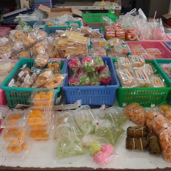 铁路市场主要是蔬菜、海产类,在轨道另一侧的就全是特色小吃,保证你吃到饱,价格实惠。因为这里很纯正,来这里可以感受到浓浓的泰国本地人的生活气息,他们平日的生活,饮食。