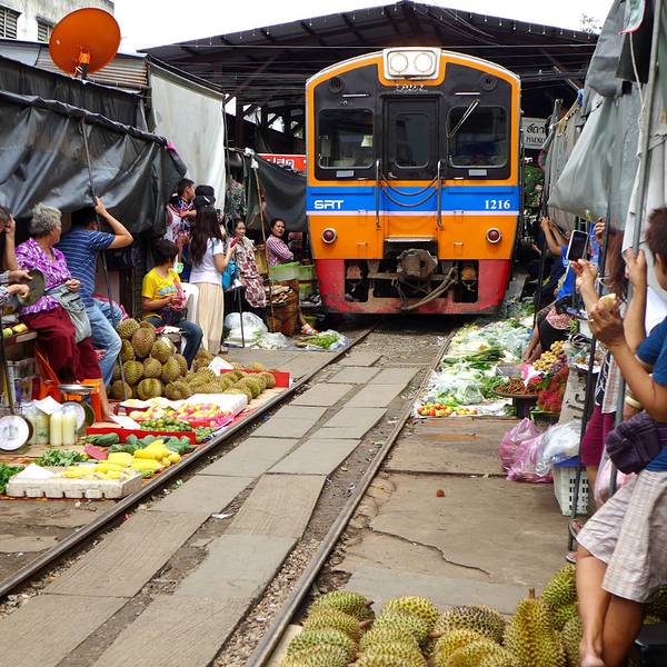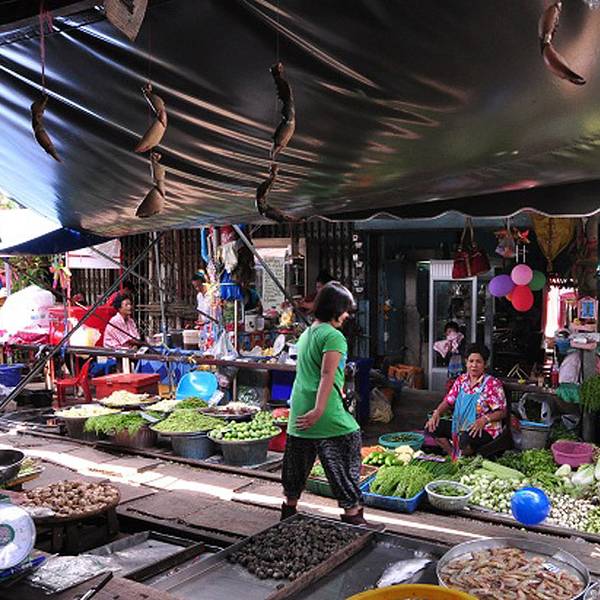 近距离与火车擦身而过——独一无二的 Mae Klong 铁道市场