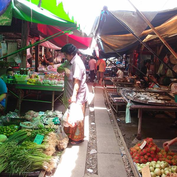 实用 ...过这个菜市场,如果去的早一点可提前在此闲逛等候一下,不建议在此购物,但是这里的小吃还是不错的哦在美功铁道市场,你能看到最市井、最接地气的曼谷,我们平时经常看到那个吆喝着“甜甜甜”、“冰冰冰”的冰冰姐,她卖椰子就是在美功铁道市场。市场位于夜功府,是泰国最小的一个府治,从曼谷市区过去车程2-3小时...在美功铁道市场,你能看到最市井、最接地气的曼谷,我们平时经常看到那个吆喝着“甜甜甜”、“冰冰冰”的冰冰姐,她卖椰子就是在美功铁道市场。市场位于夜功府,是泰国最小的一个府治,从曼谷市区过去车程2-3小时,还是很远的。曼谷乘坐BTS Ekkamai站2号出口的东部巴士总站乘小巴也能前往,建议参加地接社的一日游,有乘小火车的行程,还有附近的水上市场等景点,串在一起游玩比较方便一点。美功铁道市场的菜摊就分布在火车轨道的两侧,每天都有八趟火车经过这个菜市场,如果去的早一点可提前在此闲逛等候一下,不建议在此购物,但是这里的小吃还是不错的哦。当火车来之前,在广播三次之后,你会看见商贩们以迅雷不及掩耳之势,迅速将货品和遮阳布收好,立在一旁,随着一声尖锐气笛,一场令人瞠目结舌的奇观即将展开。一辆时速15公里(对,就是这么慢)的火车从远方缓缓驶来,沿着铁轨驶入菜市场不足2米的间隙中。火车紧贴着各种水果、蔬菜和篮篮框框驶过,在这里参观还是得提醒一下:注意安全。因为轨道后车箱也占了差不多三十公分的距离,别以为离开轨道就可以了,记得把车厢的间距也算上那才是安全距离。体验与火车擦肩而过的惊险刺激,这就是美功铁道市场的看点了,市场本身参观是免费的,参观时间不长,半个小时左右足够了。市场上卖花卖小吃的,还是值得转转。 展开