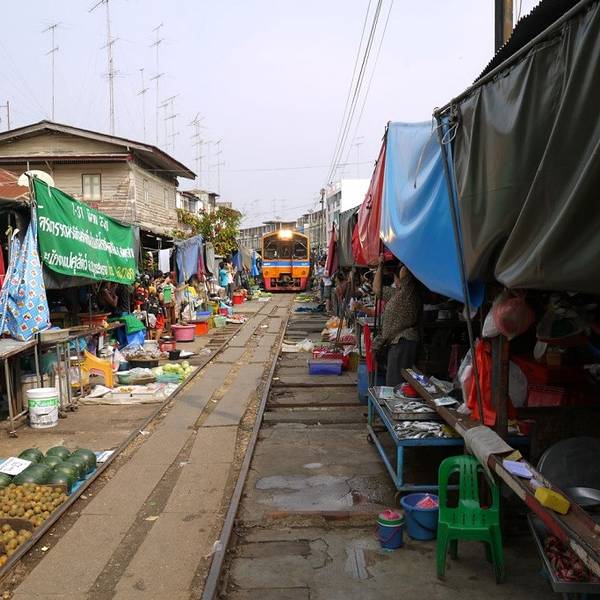 实用 建议看11点10分左右的,这样早晨不必太赶,市场一小时左右游玩时间足够,下午可以搭乘TUTU前...在距离曼谷市区约一个半小时车程的美功有一个开在火车铁轨上的小市场,它被称为最危险的市场,是因为每天都会有火车从这个小市场驶过,火车驶过湄功镇和万林县两个车站,当火车驶过菜市场,摊贩们会迅速收起遮阳...在距离曼谷市区约一个半小时车程的美功有一个开在火车铁轨上的小市场,它被称为最危险的市场,是因为每天都会有火车从这个小市场驶过,火车驶过湄功镇和万林县两个车站,当火车驶过菜市场,摊贩们会迅速收起遮阳棚,火车快速通过,画面和谐,城市的发展与传统生活习俗的碰撞。