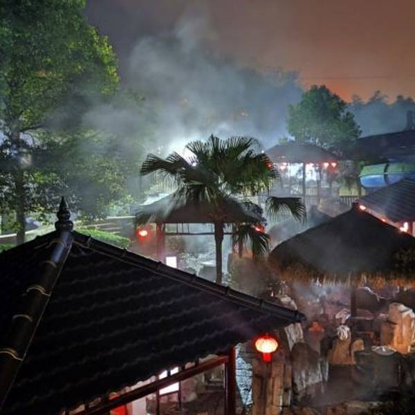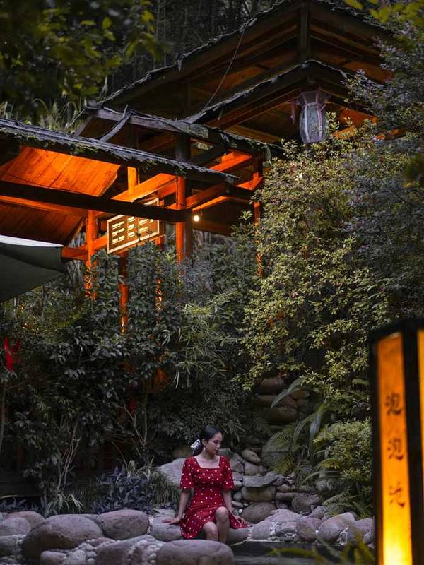 🏨酒店被森林环绕 山中秋日降温的些许凉意被温泉氤氲水汽的朦胧所掩盖 更似置身于人间仙境
