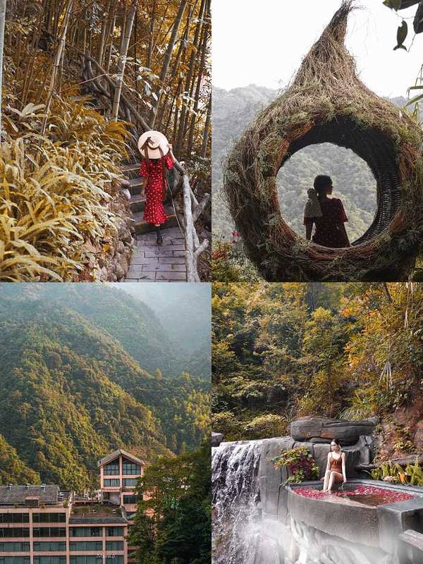 ♨️温泉区有各种网红拍照打卡地 奉上全干货攻略⬇️💃🏻穿上一条好看的裙子 带上泳衣先去丛林吊桥与瀑布秋千 还有巴厘岛同款鸟巢 鸟巢在无边泳池旁边 瀑布秋千从鸟巢旁边的小路走下去就能看见 不得不说红裙子上镜真美hah