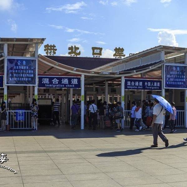 出了轻轨站,右边就是拱北口岸。口岸的过关通道