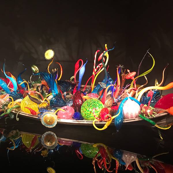 “带领吹制玻璃界进入大规模雕塑的领域。”美国玻璃艺术家奇胡利(Dale Chihuly)因其作品风格独树一帜而闻名世界。而这座展馆正是以奇胡利作品为主的玻璃艺术展馆,一定会让你叹为观止。 1. 展区 奇胡利玻璃艺术园的展览分为室内区和室外区。室内展品多为奇胡利大师多年间盛行不衰的作品,色彩斑斓的玻璃制品与室内的灯光搭配,仿若被赋予了鲜活的生命力;室外则以一个巨大的玻璃展厅为主,展厅里陈列着一个100英尺长由1400片玻璃组成的悬浮雕塑,随着自然光的变化而变幻多姿,美的惊心动魄。 2. 书店 艺术园内还有间书店,出售玻璃制作方面的相关书籍、奇胡利大师作品的画册等。