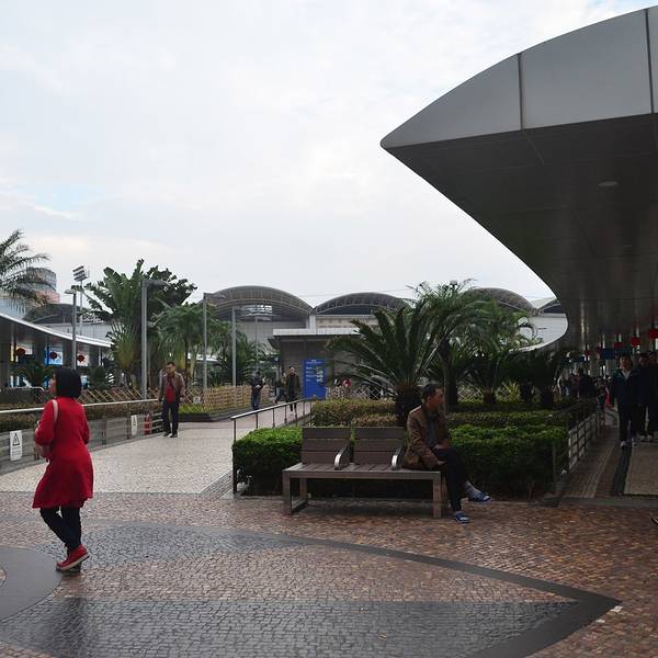 世界很大,但是也很小,我们在珠海的故事,是讲也讲不完的。国旗高高在上,引导客流的护栏仿佛在述说着这里人来人往。这个时候正是正午,客流相对小一些,另外大家都去觅食去了,所以人不是很多。这里比前几年,装饰得更现代化了。来拱北只为搭车,去下一个地方,