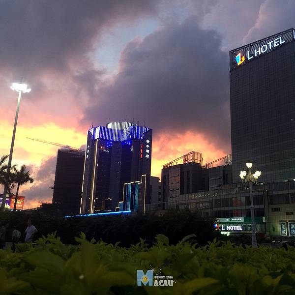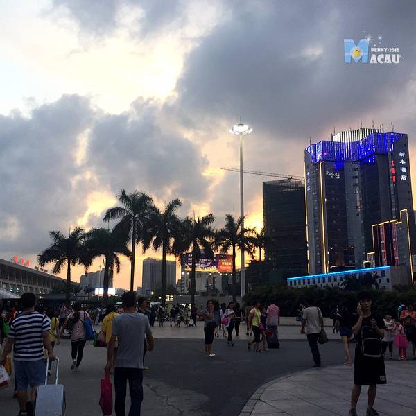 回到关闸,过关后,在珠海拱北等大巴,顺便看看晚霞