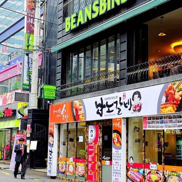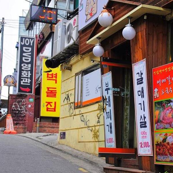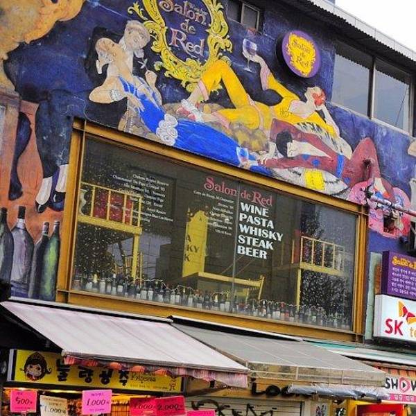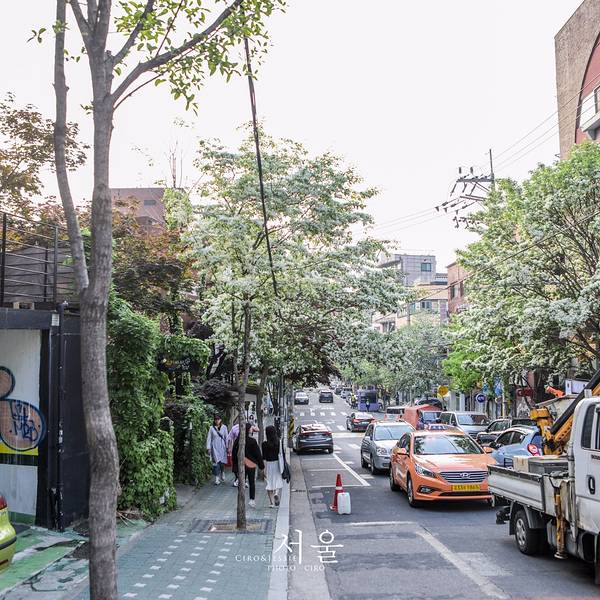 这一块区域是弘益大学附近,很多餐厅、咖啡馆,生意看上去都很好,很有人气的样子