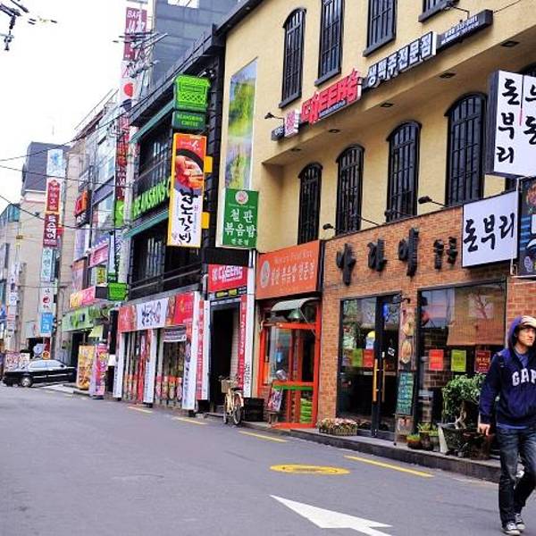 下午茶可以选择梨大附近的蛋糕店或者弘大附近的“咖啡王子一号店”,说不定你也可以碰到自己的蛋糕公主或者咖啡王子。梨大附近还有许多路边摊,随时吃些零食,如炒年糕、血肠等韩剧中经常出现的食物。 不过,由于我自己当时行程的匆忙,直接就街解决了,因为路边实在太多可爱的选择。