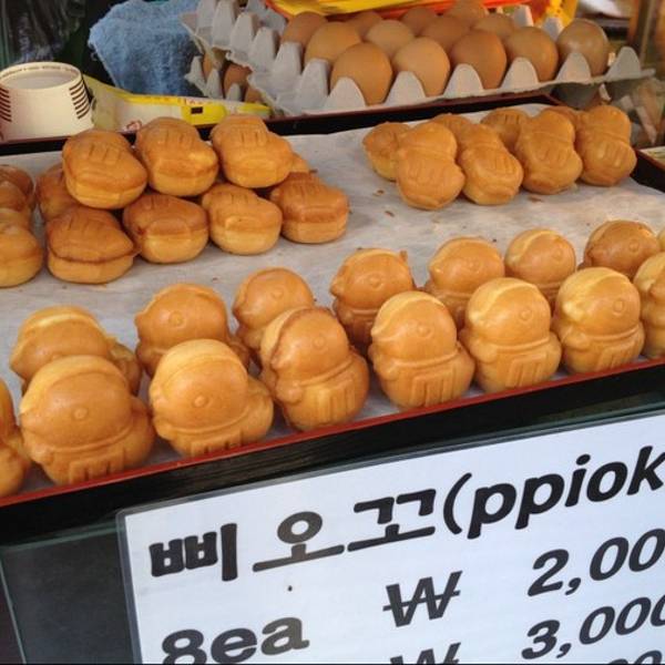 - 不知道是不是这家做的不好,反正边上咬着很硬,不是很好吃。不过这个叫做삐오꼬的小鸡一样的饼还真不错