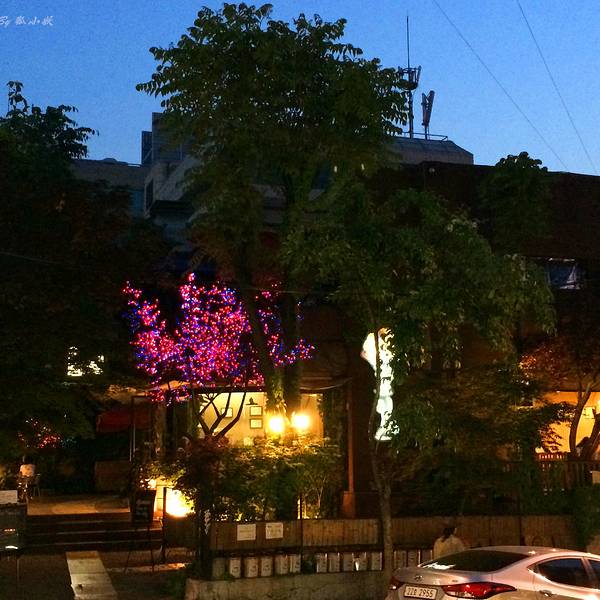 吃完晚饭,去完成另外一个愿望清单,就是去看咖啡王子一号店。说实话我没看过这部韩剧,不过冲着貌似很高的人气,还是决定去看一下。 根据我自己的记忆,2号线弘大站4号出口出来往回走,看到一个在建筑物很大的Seven Springs牌子时拐进去,一直走到一个很大的分叉丁字路口左转,然后最好问问人再右拐哦~~只要拐对了就要一直走到底才会看见这个咖啡馆,是在一个比较安静的小路上。 这一块区域是弘益大学附近,很多餐厅、咖啡馆,生意看上去都很好,很有人气的样子 正当我走的心灰意冷不知道是否能找到时,真是柳暗花明又一村,忽然发现蓦然回首就是它啦~