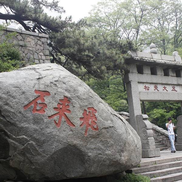 竟然有人穿高根皮鞋登山,我也是佩服妹子们了。一般游人们会选择在这里休息一会。加油啊,无限风光在顶峰过了五大夫松再往前走就要进入十八盘了。一般游人们会选择在这里休息一会。五大夫松边上是飞来石,这里是泰山比较有名的景点之一,关于这里还有典故呢,据说是秦始皇封的呢。树很老了,却是冠盖很大,同行的人介...过了五大夫松再往前走就要进入十八盘了。一般游人们会选择在这里休息一会。五大夫松边上是飞来石,这里是泰山比较有名的景点之一,关于这里还有典故呢,据说是秦始皇封的呢。树很老了,却是冠盖很大,同行的人介绍说,这不是原来的那一棵,是后来种的。即使这样,树还是很老了,需要铁棍支撑着。