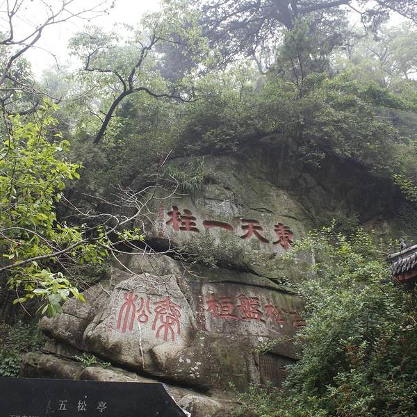而五大夫松现在仅剩两棵松了,其中有一棵还被铁棍支撑着,不过它依然屹立不倒从云步桥继续向上,就到了五大夫松。过了五大夫松的牌坊,有个巨大的飞来石,让人眼前一亮。而五大夫松现在仅剩两棵松了,其中有一棵还被铁棍支撑着,不过它依然屹立不倒。