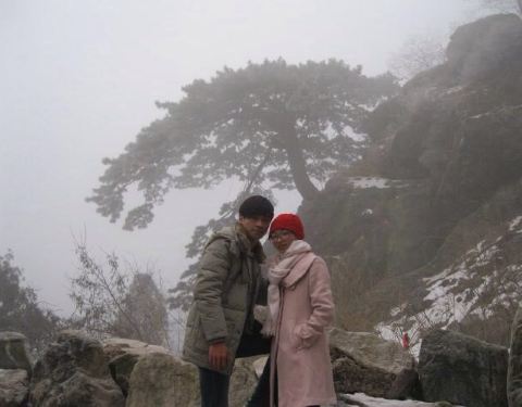 泰山松跟黄山松有得一拼,而且恰好赶上飘着雪花,本来郁郁葱葱的松树披上了一层银妆!分外的妖娆多姿!真漂亮!