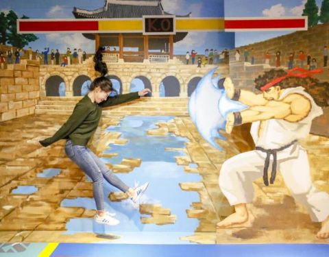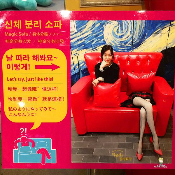 就在仁寺洞南边入口边的地下一层,挨着中路三街的地铁口,最好是两人一起来玩,不然很多拍照都照不出来效果就在仁寺洞南边入口边的地下一层,挨着中路三街的地铁口,最好是两人一起来玩,不然很多拍照都照不出来效果。每张画的边上都有图片告诉大家在哪个角度怎么拍摄出立体的感觉。