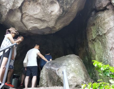 崂山仰口景区的一个小景点。 门口有很多叫卖灯的,没必要买。 洞只能容一个人的宽度,所以通行很慢崂山仰口景区的一个小景点。从名字就能看出他是什么样形状。 就是两大石头之前的一个狭小的洞,可以从石头下面上到顶上去,有点黑。 门口有很多叫卖灯的,没必要买。 洞只能容一个人的宽度,所以通行很慢。