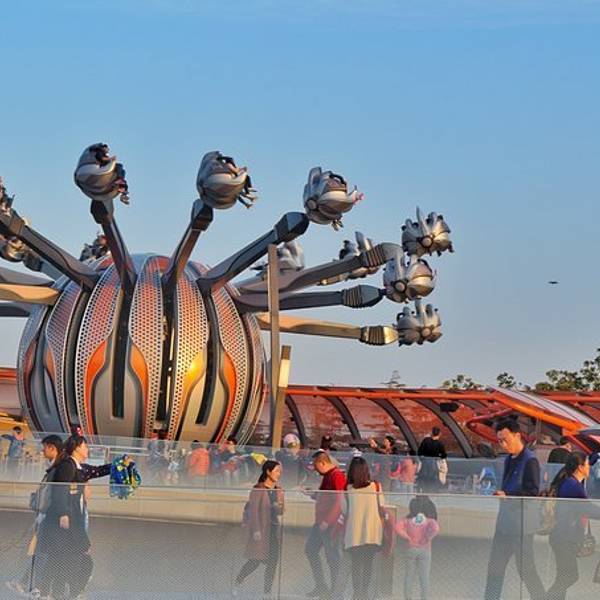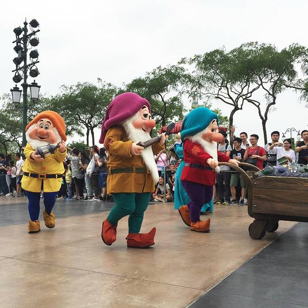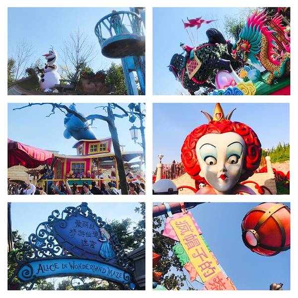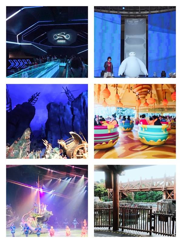 (1)飞越地平线:7点半之前就在排队,入园后一路狂奔,最终才能在8点半不到就体验完这个项目,不知道是不是因为坐在靠左的位置,看到屏幕右下角操作台亮着的灯非常出戏,而且除了应对景色高度的忽上忽下,没有配合的风、水增加4D真实感,比较失望,跟别人讨论可能是阉割版,个人感觉排队1小时还好,要是像后来的人动辄排两三个小时,真心不值得。(2)创极速光轮:因为快速票有时隔2小时才能再取得规定,我们在这里硬排了一个半小时,脚站的酸,玩完后,整个腿是软的...但旁边有小伙伴是刚玩完太喜欢又来重排一次。除了项目的长队,还要先排一个寄存包的队,这个时候要发挥一下不要脸的精神,一个人去存包(一定要有1元硬币零钱哦),一个人排队,然后嘛...插队吧~这里还是允许的。创是迪士尼速度最快的过山车之一,虽然我很怕失重类的项目,但对于装备的酷炫还是跃跃欲试,兴奋夹杂着害怕的复杂情绪之下,坐了一回再也不想坐第二次的极速光轮,还好全程只有一两分钟,不然可能真的会吐出来...(3)七个小矮人矿山车:坐完创很久之后我们才缓过来,拿着快速票大摇大摆地走过长长的队伍,从进去到玩完出来不过十几二十分钟(快速票真是个好东西/(ㄒoㄒ)/~~),有了创的体验在前,小矮人的过山车完全是个小case,全程我还是睁着眼的哈哈哈。花车只有下午1点和4点半两场,一定要赶上一场,整个氛围会让你从内心快乐起来。一般提前半个小时花车路线两旁位置都坐满了人。路线在入园拿的地图上有,即明日世界经大门到七个小矮人矿山车那段路,其实到时候看哪条路上清场就知道了。表演我们只看了一场《人猿泰山》,实质上就是杂技表演,世面见得比较少的我看的非常开心,而男票在一旁快要睡着了。。。。感觉最无聊的是巴斯光年,中午很多热门的项目快速票都发完了,我们本着“不拿白不拿”的精神取了仅剩的巴斯光年快速票,一个拿着激光枪biubiubiu射字母Z的幼稚游戏。最大的惊喜,或者说是安慰,是在6点左右我们排了一个晶彩奇航的队,之前是sei说傍晚会有很多人走的...都6点了我们还排了一个多小时的队!