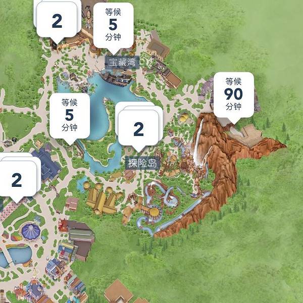 下载迪士尼官方APP,地图导航免绕路很实用,还能实时查看各项目排队情况。
