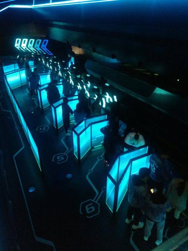 基本上大家的战略都是检票进门后以最快的速度奔跑到只能硬排的飞越地平线,出来后飞奔至创极速光轮拿快速票,再去排其他项目。从飞越地平线出来后,考虑了下路线,还是先去拿了七个小矮人的快速票,再奔向创硬排。