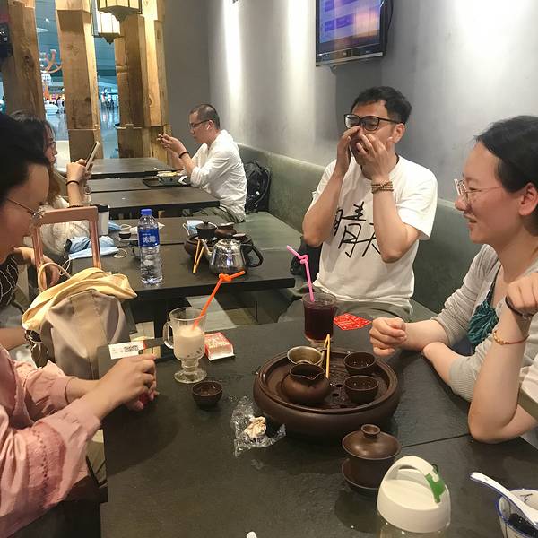 机场很小,也没什么正经候机厅,干脆去一家茶室里喝茶玩游戏,小姐姐点了潮汕工夫茶泡白茶,80一壶...