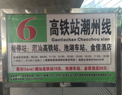 - 同时还有来自汕头、潮州、梅州、普宁、澄海方向的机场巴士,从揭阳机场到潮州金信宾馆站,单程单人2...2019-11-09 14:35来自携程 网友