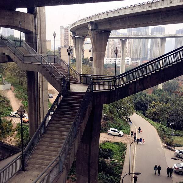 - 轻轨都特别高,李子坝站从一栋楼的8楼穿过。很多地铁站可以下来看风景