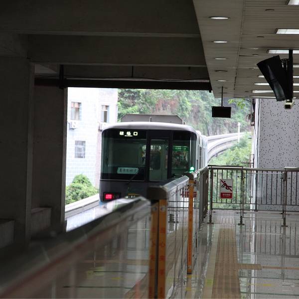 回到上海后,在微博上看到重庆的这个站又火了,确实是“山城特产”!下面的图片是在轻轨的后面拍摄的,重庆的轻轨前后都有窗户,可以看到列车室,透过列车室的大玻璃则可以看到外面,热爱拍照的朋友可以选择这个角度~