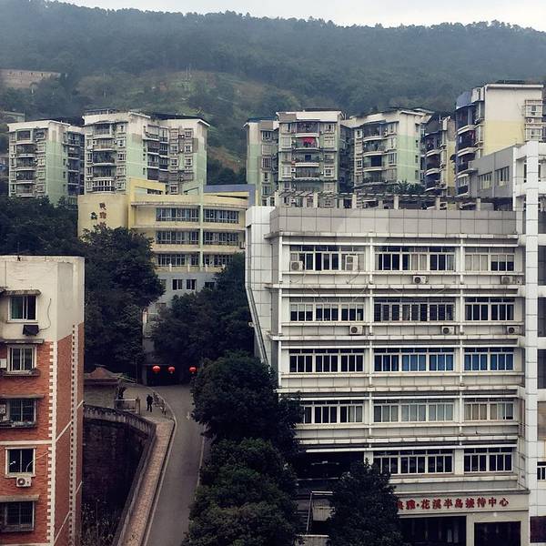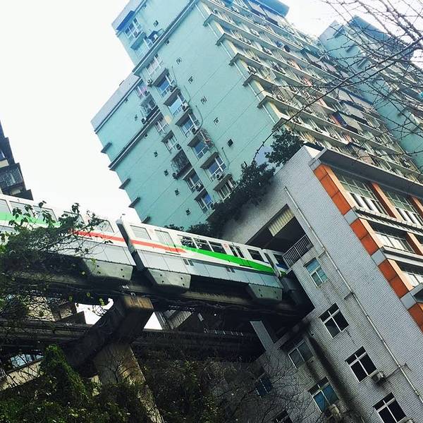 重庆的地铁2、3号线是轻轨,坐轻轨看重庆是一定要的哈。山城一层又一层,你不知道哪儿是地面。轻轨都特别高,李子坝站从一栋楼的8楼穿过。很多地铁站可以下来看风景。