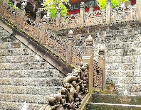实用 看看寺庙外即使是晴天 重庆的空气中也总有雾气弥漫。总感觉异域风情明显哈不过古老的感觉是很浓厚的走着走着发现了一座寺庙