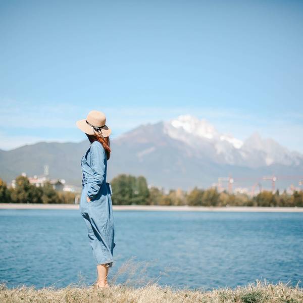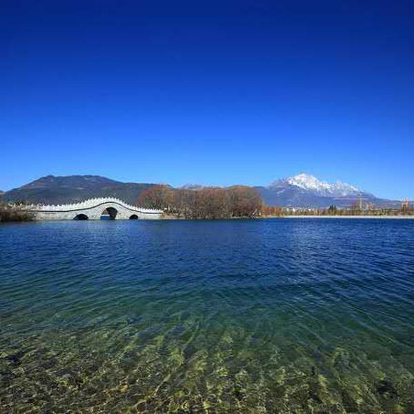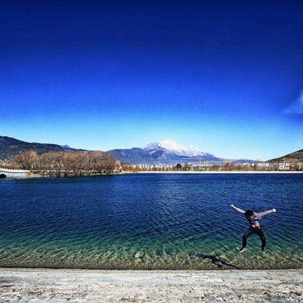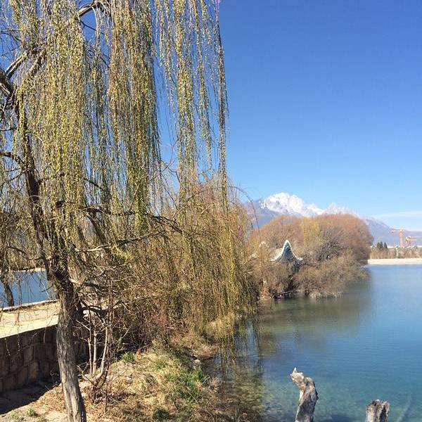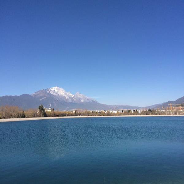 除了很适合拍摄小清新人像,这里还是拍摄玉龙雪山的绝佳之地。无风的冬日,天气晴朗,水面似一面镜子,倒映出的玉龙雪山,分不清哪个是实,哪个是虚。