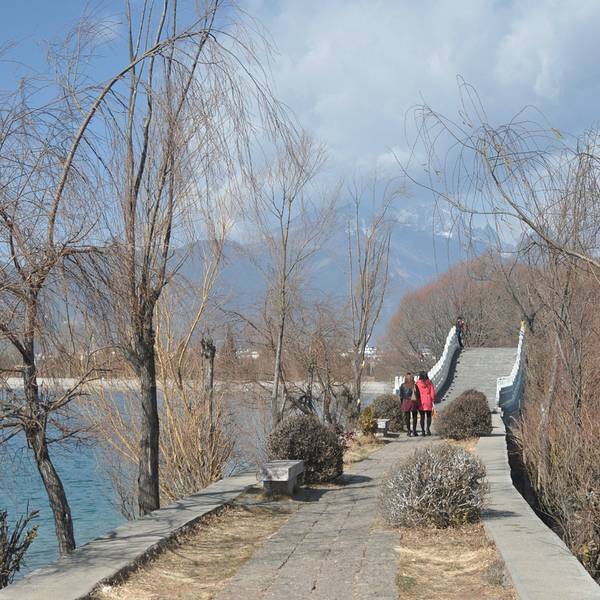 古城距离清溪水库,是有一段距离的,我们当时是步行去往黑龙潭,然后走一段路经过了花马街,再继续前...古城距离清溪水库,是有一段距离的,我们当时是步行去往黑龙潭,然后走一段路经过了花马街,再继续前往,最后打车回大水车,也有公交可以到。远处就是雪山