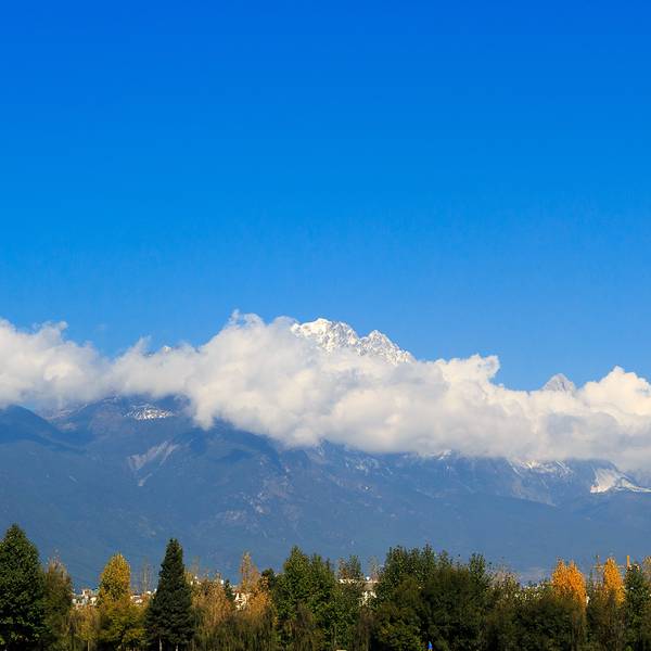在阳光的照耀下,蓝天白云格外有分辨率,玉龙雪山又在不远处静静眺望