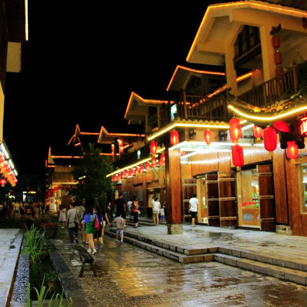 溪布街一条还算是古色古香的道路,是一条吃吃喝喝的步行街吧,分布着很多经营各种的店面,吃穿用度都有,晚上还有特色的表演。沿着溪水一路走,看看沿岸的景色,也是很漂亮。夜晚和着灯光,挺美的。