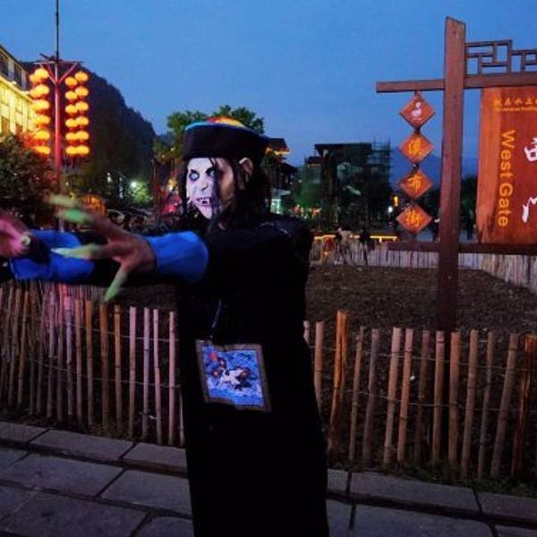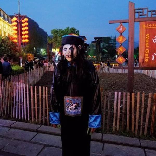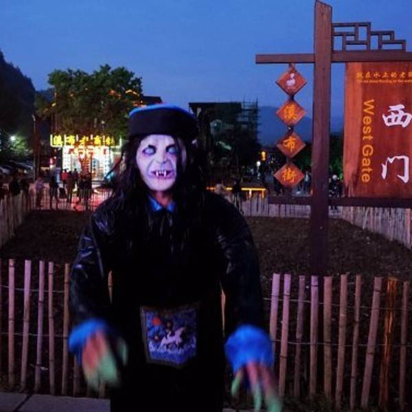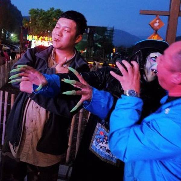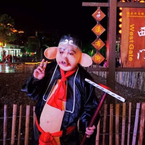 一轮清月之下,却是五彩斑斓,一条静水之畔,满是歌舞升平,溪布老街的夜,令人流连忘返。奇峰之中,秀水之畔,隐匿者这条溪布老街。坐夜寻歌,把酒言欢,这里有土苗人家的生活影像。老匠奇技,旧时记忆,感受老湘西的柔软时光。门口这货吓了我一大跳,还以为是无害的呢,只是装装样子,但正在拍照,突然之间就向我扑过来了,赫老子一跳。但是他很快就放弃我了,好像更喜欢扑妹子。这老哥真是重口味啊,令人不得不心生敬佩。坐夜寻歌,感受原住民千百年来不变的生活方式。随性而唱,随心而饮,把酒言欢,畅快淋漓,这就是溪布老街恒古不变的基调,夜色下的缩影。或是独坐一隅,静品佳酿,或是三五成群,借酒高歌,或是留住时光,独享美曲,或是花前月下,如影随形。登上了溪布老街最高的客栈,想要看看老街的全景,但是还不够高。总希望能有一个俯看众生的视角,让流光溢彩能够一览无遗在自己的面前,但是遗憾。门口的僵尸换成猪八戒了,这个猪八戒更色,美女过来立刻搔首弄姿,主动合影。 展开
