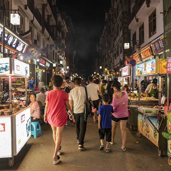 金骆驼 溪布街位于张家界武陵源区的索溪河边,张家界旅游必不可少的打卡景点,也是张家界夜晚最热闹的地方,可以说张家界,武陵源,不夜城~如果不是亲自前来,你一定想不到在这群山环绕的世外桃源之中,还藏着这样一个热闹非凡的地方。溪布街位于张家界武陵源区的索溪河边,这条号称是全国唯一集水上酒吧街、中华名特小吃街、湘...张家界,武陵源,不夜城~如果不是亲自前来,你一定想不到在这群山环绕的世外桃源之中,还藏着这样一个热闹非凡的地方。溪布街位于张家界武陵源区的索溪河边,这条号称是全国唯一集水上酒吧街、中华名特小吃街、湘西民俗购物精品街、休闲客栈、创意工坊等为一体的复合型旅游商业步行街,如今已成为了张家界旅游必不可少的打卡景点,也是张家界夜晚最热闹的地方,可以说已经超过了张家界市区的繁华。每天夜晚溪布街上的酒吧都会嗨到凌晨二三点钟才散场,来自天南海北的游客在这里找到自己的快乐,放空工作生活中的烦恼,所以此地又有“小丽江”的名称。溪布街上有很多餐饮店,不过我却更喜欢去到旁边不远处的夜市街,因为这种网红街区的味道确实一般,重点是价格还不便宜,过来逛一逛即可;当然,如果想喝点酒听听歌的话,那么溪布街确实是武陵源最好的去处~因为临近索溪河的缘故,所以溪布街的夜景也很漂亮,但是一定要来早一点,我九点钟过来便已经关闭了大部分灯光。逛完了酒吧街当然也得吃点才行,其实对于独行的旅行者来说,吃饭并不是一件很庄严的事情,随便找个路边摊点两个菜吃吃就是幸福。夜市街的位置就在溪布街隔壁五十米左右的位置,与溪布街是完全不同的两个状态,如果说溪布街是一群文青的矫揉造作,那么夜市街则是贴近生活的烟火气息。各种地道小吃沿着小巷分布,几百个店铺吆喝声不断,阵阵香气扑鼻而来,你说这样的情况下谁还扛得住?不吃一顿说得过去么~长沙的小龙虾那是闻名全国,引得无数吃货专程而来,武陵源的小龙虾比长沙能差点味道,但是价格却便宜不少,68元一斤买两斤还送一斤,算下来的单价比很多城市都便宜太多了。不过一个人吃不完那么多,就点了一斤小龙虾和几个烧烤串,味道很棒,吃得很美~凌晨一点四十的街头,这种场景是不是有点不夜城的感觉?