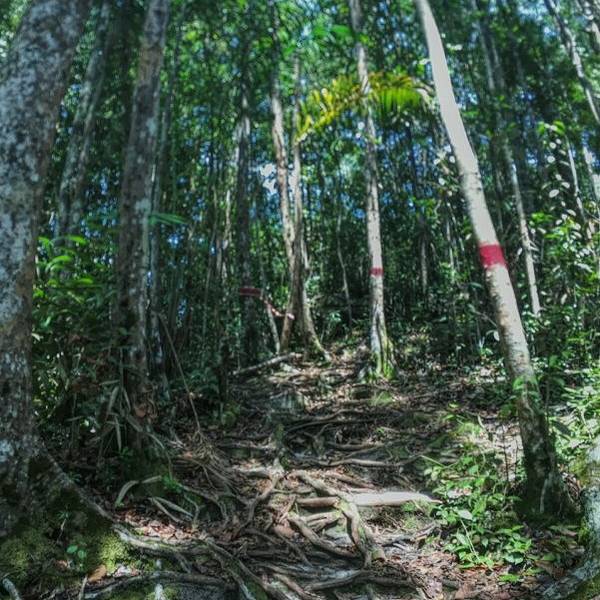公园共有16条徒步线路,我们放弃了去其他海湾的线路,选了一条相对较长的内陆环线,期待热带雨林的各种际遇…结果呢…木有猴猴、木有鸟鸟、木有蜥蜴…唯一看到的动物就是我俩彼此;望不尽走不完的树根路和乱石包…再加暴晒、负重、严重缺水…简直各种爽歪歪,早上还去晨了一个练,简直要作死自己的节奏啊![疯了][疯了][疯了]