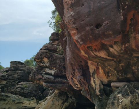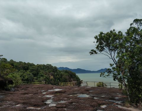 悬崖峭壁、岩石狎角、海湾、沙滩…长鼻猴、银叶猴、大蜥蜴、各种鸟类…世上最古老的热带雨林之一…攻略上是这么说的…