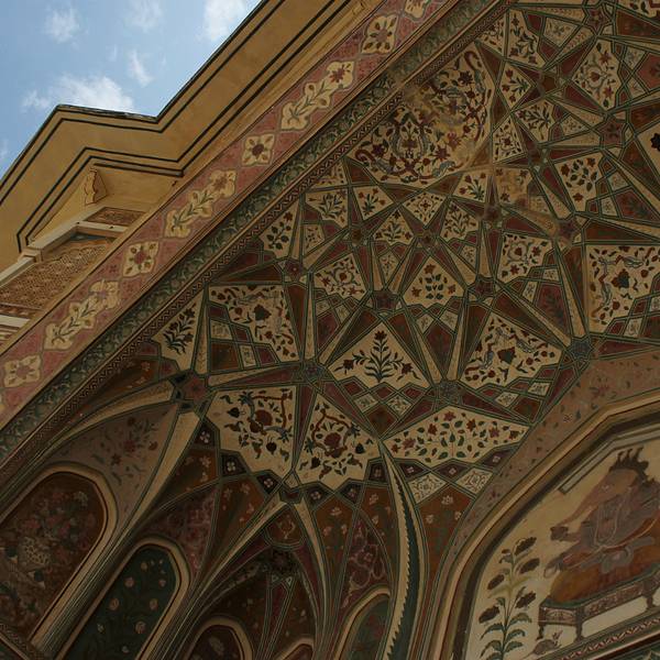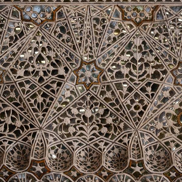 印度的景点门票都实行印度人和外国人两种票价,外国人票价200卢比/人, 走在古堡内,是一场品味时光的享受。里面的象头大门,华丽至极,精致的壁画有眼花缭乱之感。 古堡里最奢华最美丽的宫殿当属镜宫,也许远看,并不出彩。走近,才知道里面是另一番璀璨世界。墙上镶嵌着数不清的玻璃镜片,抬头看,镜片反射着光线流光溢彩,灿若星辰。若燃起一道烛光,便有千万点星光闪烁,漫天飞舞。能想象出房间里可以如此华美么?除了感慨奢华无止境之外,想不出还有什么言语,可又着实为这样的奢华之美而惊叹着迷。只有专制时代才能完成这样的杰作吧,极致的美丽之后,也许是无数眼泪的堆积。