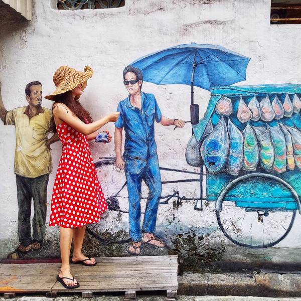 金骆驼 比如『汕头街』和『爱情巷小吃街』,经常我路过那里,白天还是停满了摩托车、五金店,晚上恍惚间到了...在马来西亚槟城是小吃最多最集中的地方,也是全球性价比最高的城市,如果只有短途的旅行,那这里一定是首选。电影《初恋红豆冰》,《色戒》等曾在这里取景,最近热播的综艺《二十四小时》第三季也在这里录制的三...在马来西亚槟城是小吃最多最集中的地方,也是全球性价比最高的城市,如果只有短途的旅行,那这里一定是首选。电影《初恋红豆冰》,《色戒》等曾在这里取景,最近热播的综艺《二十四小时》第三季也在这里录制的三期。这里非常接地气,满满的气息,走两步就有一家美食。当然来这里除了吃,不能少的一件事情就是寻找壁画啦,立陶宛艺术家恩尼斯是一位背包旅行的街头艺术家,他来到乔治市后,立刻为这座城市的文化传统所吸引。于是他拿起画笔,在街头涂鸦起来,后来就有了一副又一副的画作,最出名的就是这幅《姐弟共骑》。这幅画曾被英国《卫报》评选为世界15幅最佳街头壁画之一,也是亚洲地区唯一入围15幅佳作的壁画。正由于这些街头艺术壁画的存在,乔治市的古迹区,才变得有声有色,才让人留恋。不妨在过了正午最热的时刻之后,慢慢在街头漫步找寻这些壁画吧。槟城的很多店,有些只开上午,有的则下午才开门,像是汕头街这些则是傍晚六点才出摊,所以要去吃之前用谷歌地图查一下,是否在营业时间。