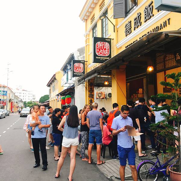 地址:唐人厝(人均:20MB)或者去『槟榔律驰名潮州煎蕊红豆霜』来上一碗这有着55年历史的小吃,用绿豆粉制作的并不是什么色素染色哦,不得不说是真好吃,每次中午回酒店路上我一定会来上一碗,冰霜打底,加入熟烂的长粒红豆及煎蕊,最后淋上棕榈糖浆&椰汁,色泽诱人,滑溜爽口,咸甜香浓。晚餐特别推荐下面这家饭店,也是来了两次的店,叫做『德成饭店』,是偶然在谷歌地图上面看到,已经50多年的历史,在这里可以吃到地道的马来风味,很多马来西亚本地人也超爱来吃,每次来这里都是排长队,果然深受消费者喜爱。