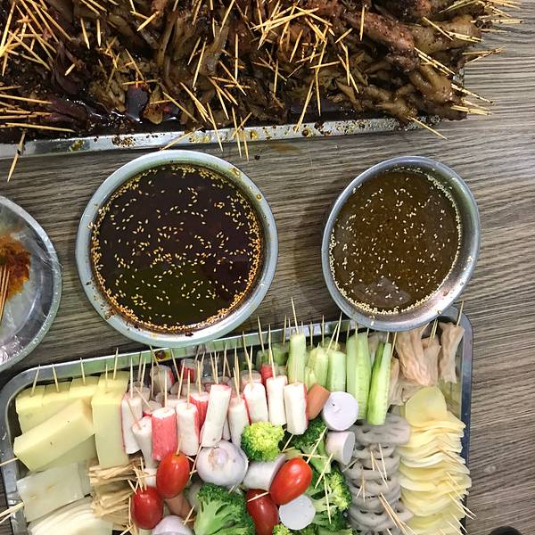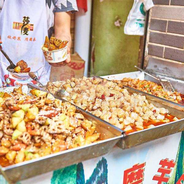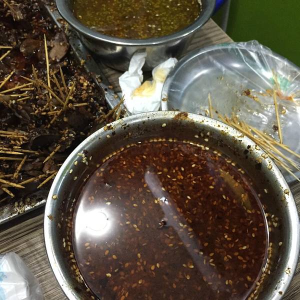 来到了马家巷,一条短短的小吃街,这个叫沾沾用牙签一个个串起来的,肉类蔬菜类都有这个是沾料,四川主要以沾料为主,很香很辣,辣的我头皮发麻,记得荤菜只能沾辣的,沾一下不能再沾第二下,因为这个调料是公用...