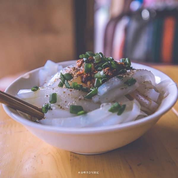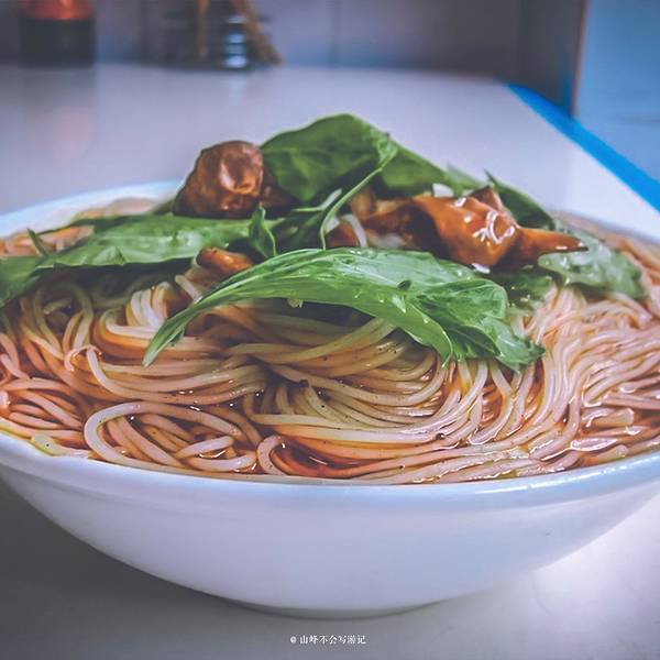 入蜀,那就不得不提的舌尖上的美味。 如果说,城市是有味道的,那么绵阳, 就是辣里头带着点讨人喜欢的甜。 开始时冲动刺激的表象之下, 却有百转千回、缠绵不去的余味。所以令人上瘾。 这味蕾的刺激,便也是绵阳最美的一部分。 一个人走在城市,最适合去寻找一些苍蝇馆子里的小吃。 那么绵阳的马家巷,注定是一个吃货的天堂。 很遗憾,在成都的时候,我的长焦坏了, 也算是为自己很少拍美食找一个借口吧。 由于在湖南待了7年的时间,我对米粉有很深的情感。 总是会在湘舵的群里开玩笑地说:想回去最关键的就是想唆碗粉。 来到绵阳,听说了绵阳米粉一定要尝一下。 她不像常德米线滚圆粗大, 也不像长沙米粉宽薄颀长, 而像缝衣针一样纤细, 如春天雨丝一般绵长, 与其说是米粉,更接近白莹莹的一种粉丝。