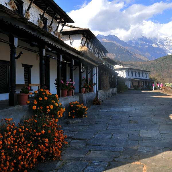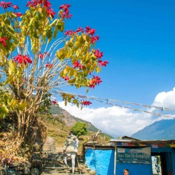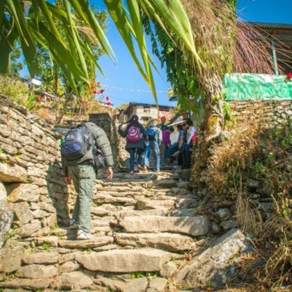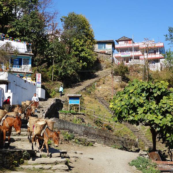 Ghandruk整个徒步游览大约2-3小时,徒步前,做好补水工作,一路上山...Ghandruk作为ABC徒步的第一个补给站,其连绵不断的上山台阶和漫山稻田令人印象深刻。