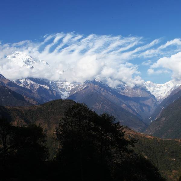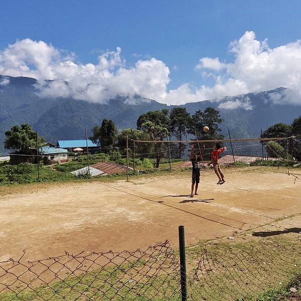 【个人小经验:为什么观雪山要看日出?】因为白天气温高,水汽蒸发在山谷里形成云,...山上的排球Ghandruk对面的风景【poonhill徒步经验总结】